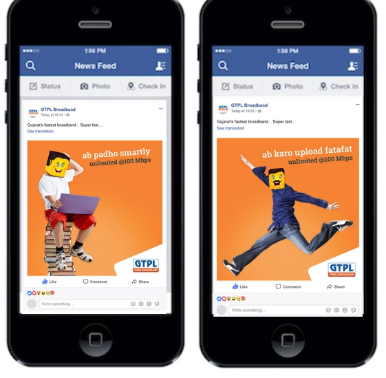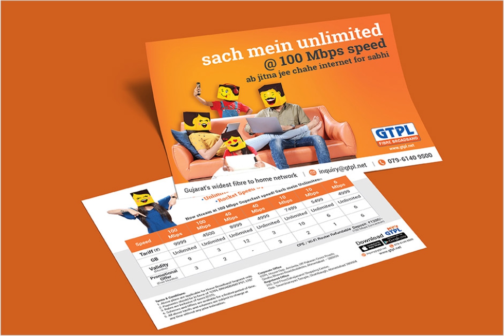 The creative idea of “Emoticons” was derived to address the pain-point of existing GTPL users. The idea behind the design was to communicate, through its visual simulation, the feeling of exhilaration and delight which the Young audience would experience while using the new fibre optic plan. The campaign tagline: Sach mein Unlimited - subtly addressed the pain-point.